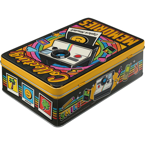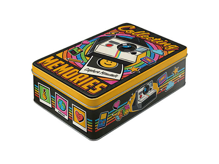 Fint skrin med präglad yta och texten “Polaroid – Collecting Memories”, Perfect att spara sina fotografier i.
