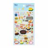 3D-klistermärken med motiv av olika maträtter på ett ark. Arket innehåller 65 st klistermärken.